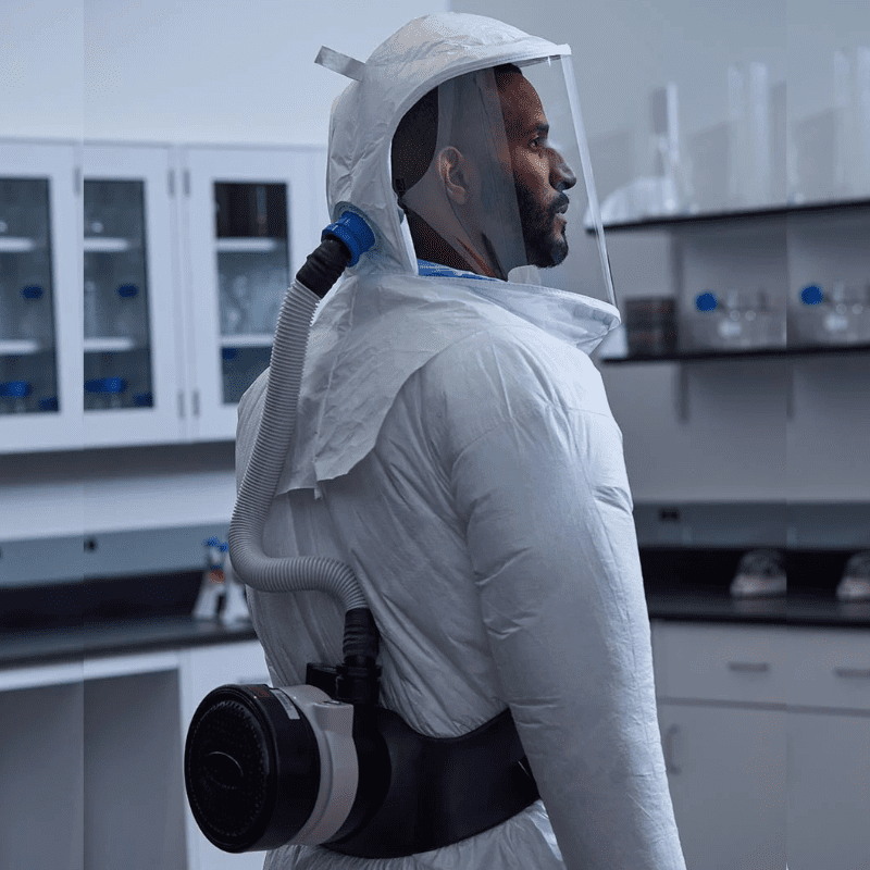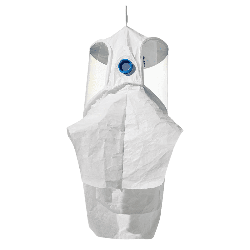 Capucha Sightline fabricada en Tychem® 2000 de Dupont con visión panorámica de 320º ininterrumpida. Especialmente desarrollada para aplicaciones en las áreas de biociencia, farmacéutica, investigación, medicina, biotecnología, entre otras. Diseñada para descansar sobre los hombros, Sightline es fácilmente ajustable para una óptima comodidad durante un uso prolongado. Incluye una manguera de aire flexible y un innovador canal de flujo de aire por la parte superior y costados de la capucha, que contribuye a prevenir la sequedad ocular y el empañamiento de lentes. Con su amplio espacio interior, se acomoda a una gran variedad de formas y tamaños de cabeza, perfiles corporales, peinados y el uso de barba. Utilizada en conjunto con respiradores turbo asistidos (PAPR), modelos EVA y EVAHL de Bullard, Sightline cuenta con la aprobación NIOSH. Factor de Protección Asignado (APF): 1.000.